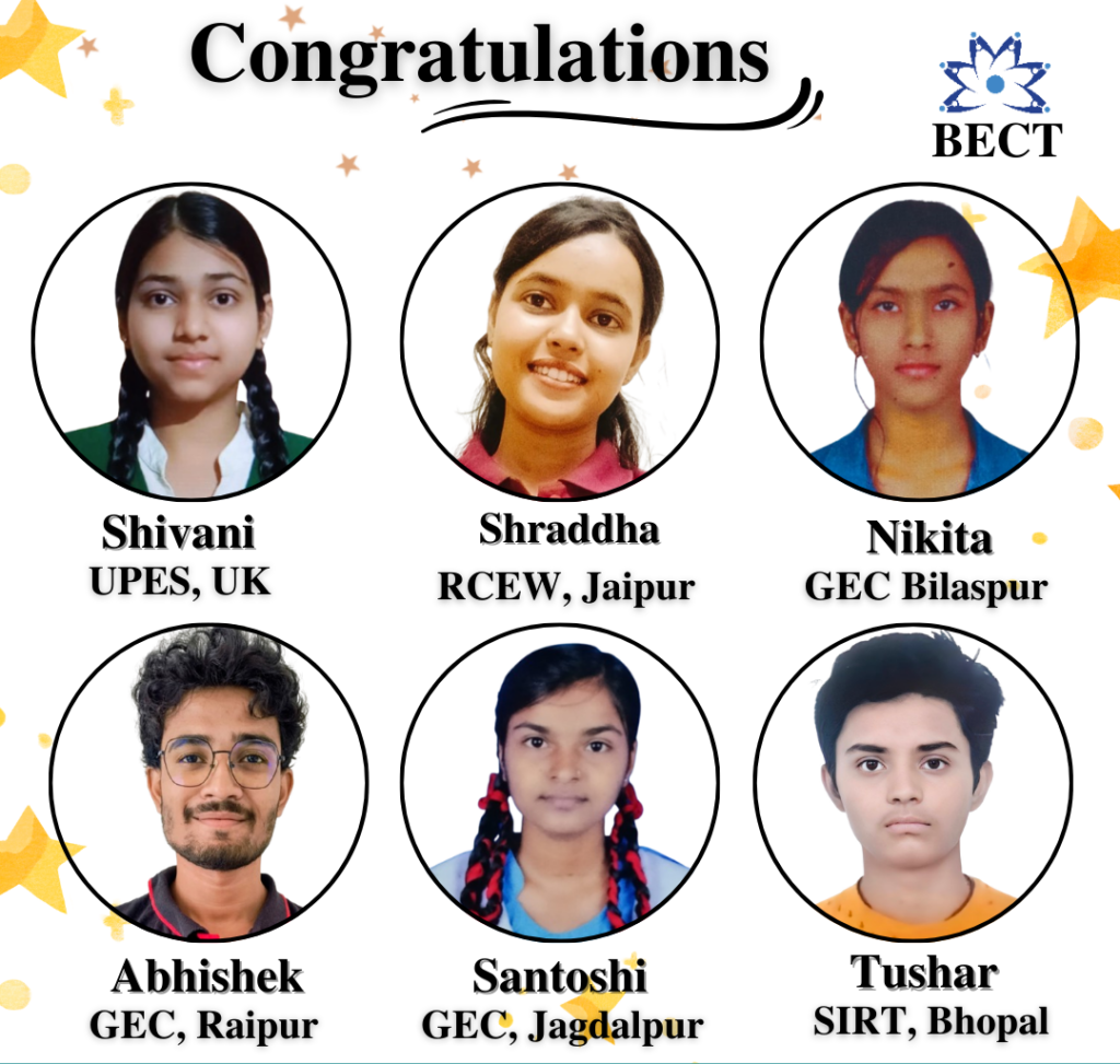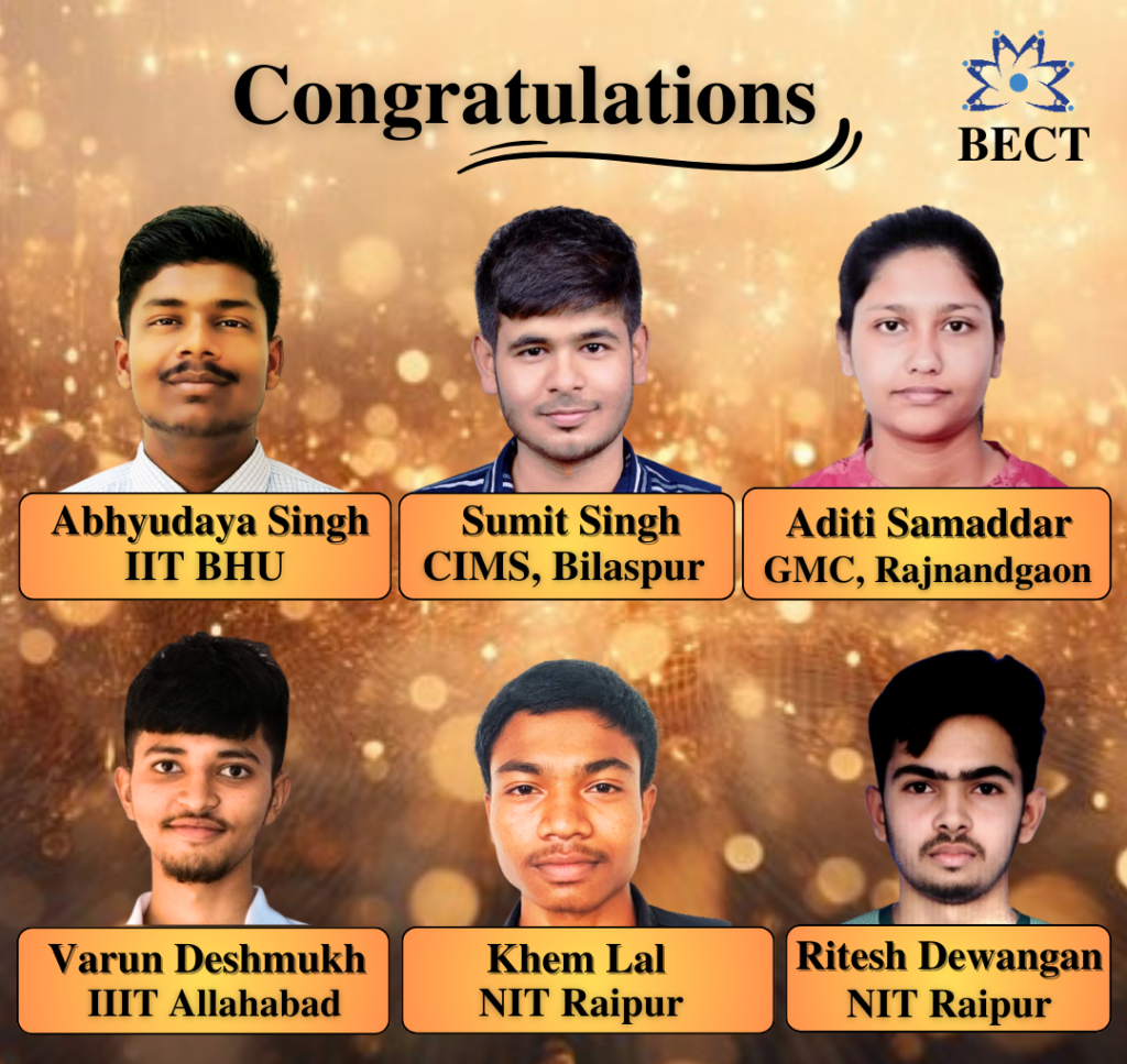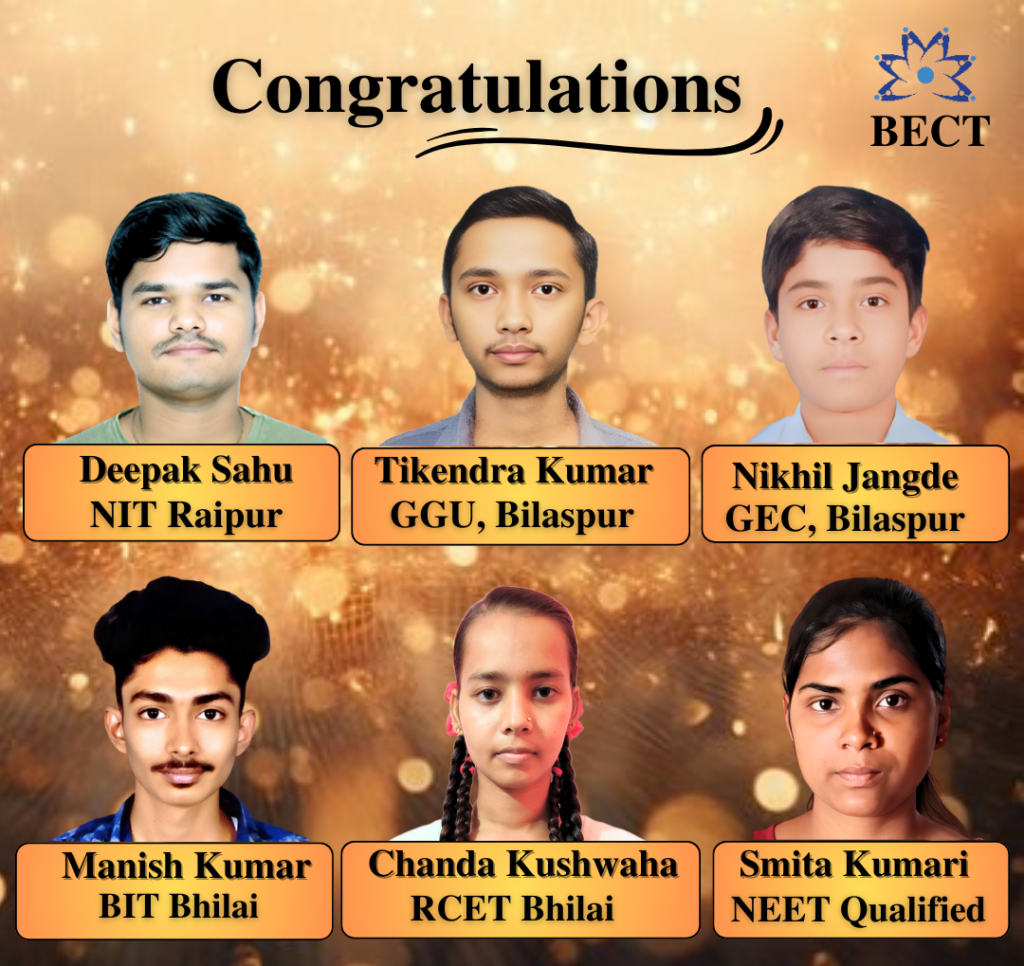 Kusum Sinha, coming from a financially weaker family, father sells vegetables near Durg, Kusum joined our Free JEE/NEET coaching program, she cleared JEE mains but she fails to qualify JEE advance. As usually girls are more deprived of education due to unconcern of parents or due to cultural practices. She also was forced to do BSc. But with our support, coaching and regular follow ups, she cleared PET exam with merit rank. And as per her JEE mains percentile and PET rank, she successfully bag a seat in one of the prestigious college of Chhattisgarh, “Government Engineering College (GEC), Raipur” and unlike other girls she chose Mechanical Engineering branch. BECT promotes girl’s education and helped Kusum in achieving her goal.